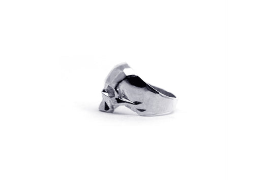 Anillo Craneo Low Poly sin Mandibula Cromado
